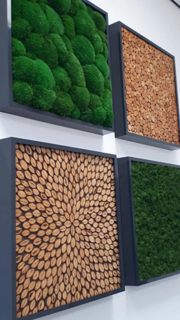 Bio Montage wanden zijn een innovatieve en duurzame ontwerpstrategie die de verbinding met de natuurlijke omgeving herstelt. Deze lichtgewicht frames worden eenvoudig aan de muur bevestigd en gevuld met natuurlijke materialen zoals light stone, duurzame schors en rendiermos.