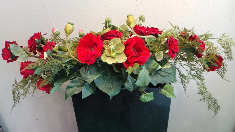 Grafwerk van zijdebloemen is een waardevolle aanvulling op verse bloemen. Door de hoge kwaliteit blijft het bloemstuk buiten vaak 6 tot 12 maanden mooi, waardoor het een langdurige en blijvende herinnering vormt.