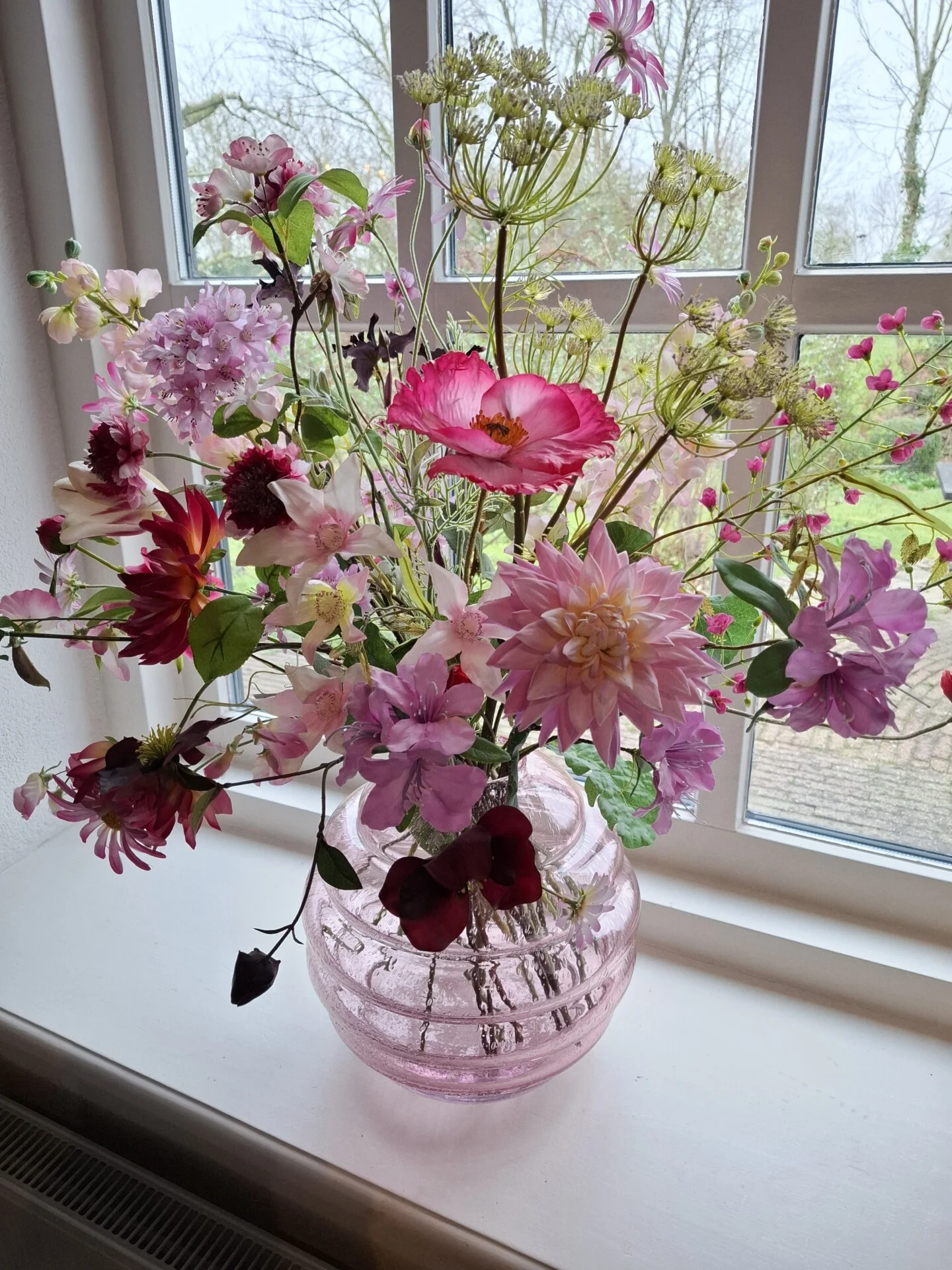 Pink glas Dutz met zomers boeket