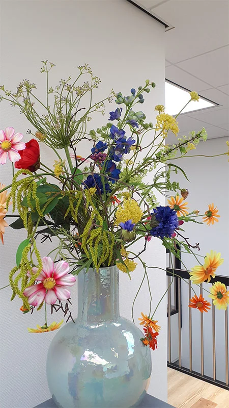 DOK 66 in Dokkum huisvest meerdere bedrijven binnen één ruimte, wat deze styling tot een bijzondere uitdaging maakte. Elk bedrijf had de vrijheid om een eigen keuze te maken in de groendecoratie, waardoor een divers maar harmonieus geheel is ontstaan.